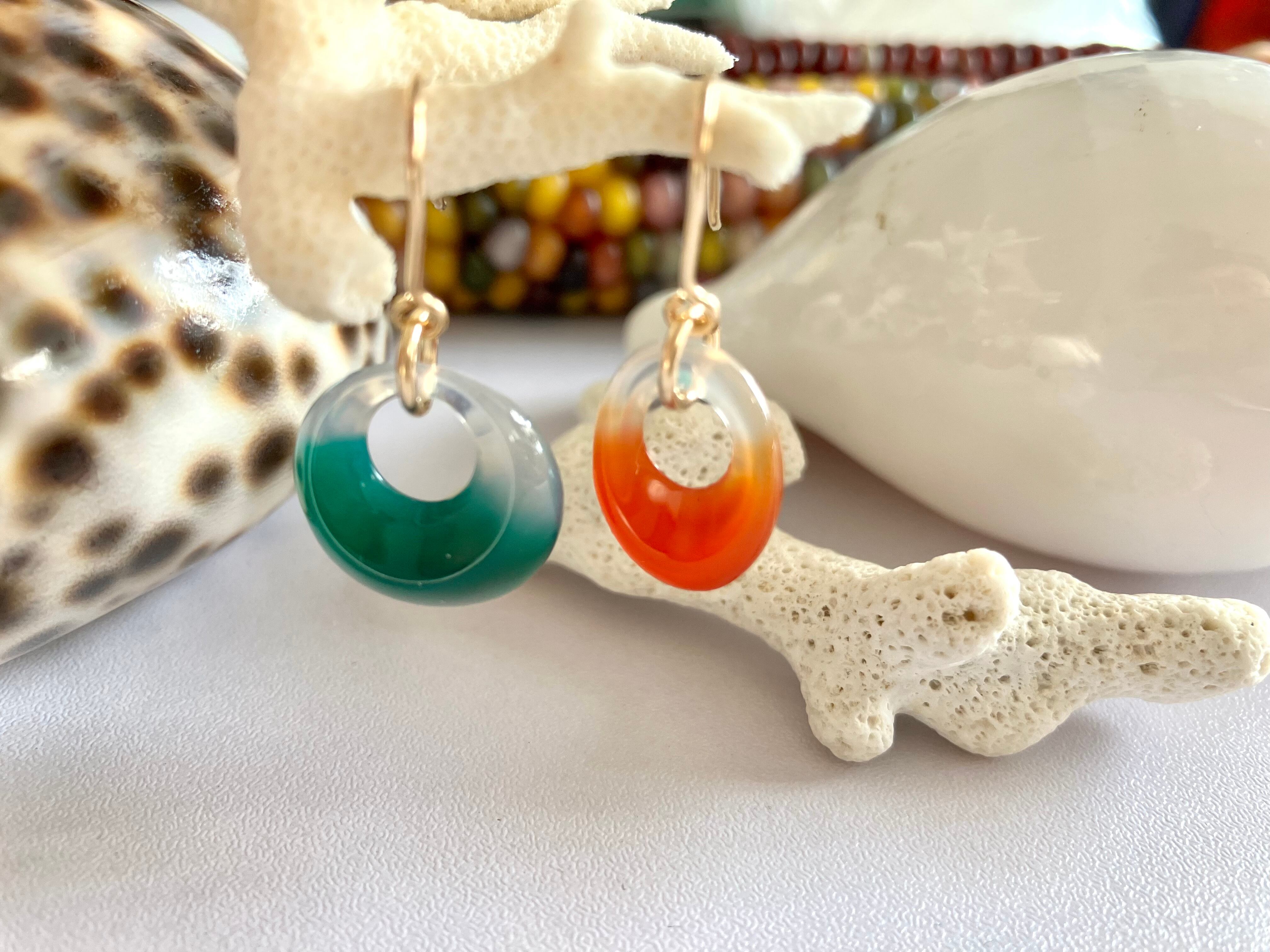 ドーナツ型のアゲートに14kgfのフックピアスで仕上げました。
