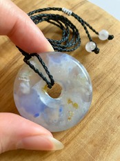 ドーナツ型の桜瑪瑙をブラックのコード(紐)を使い四つ編みでネックレスに仕上げました。